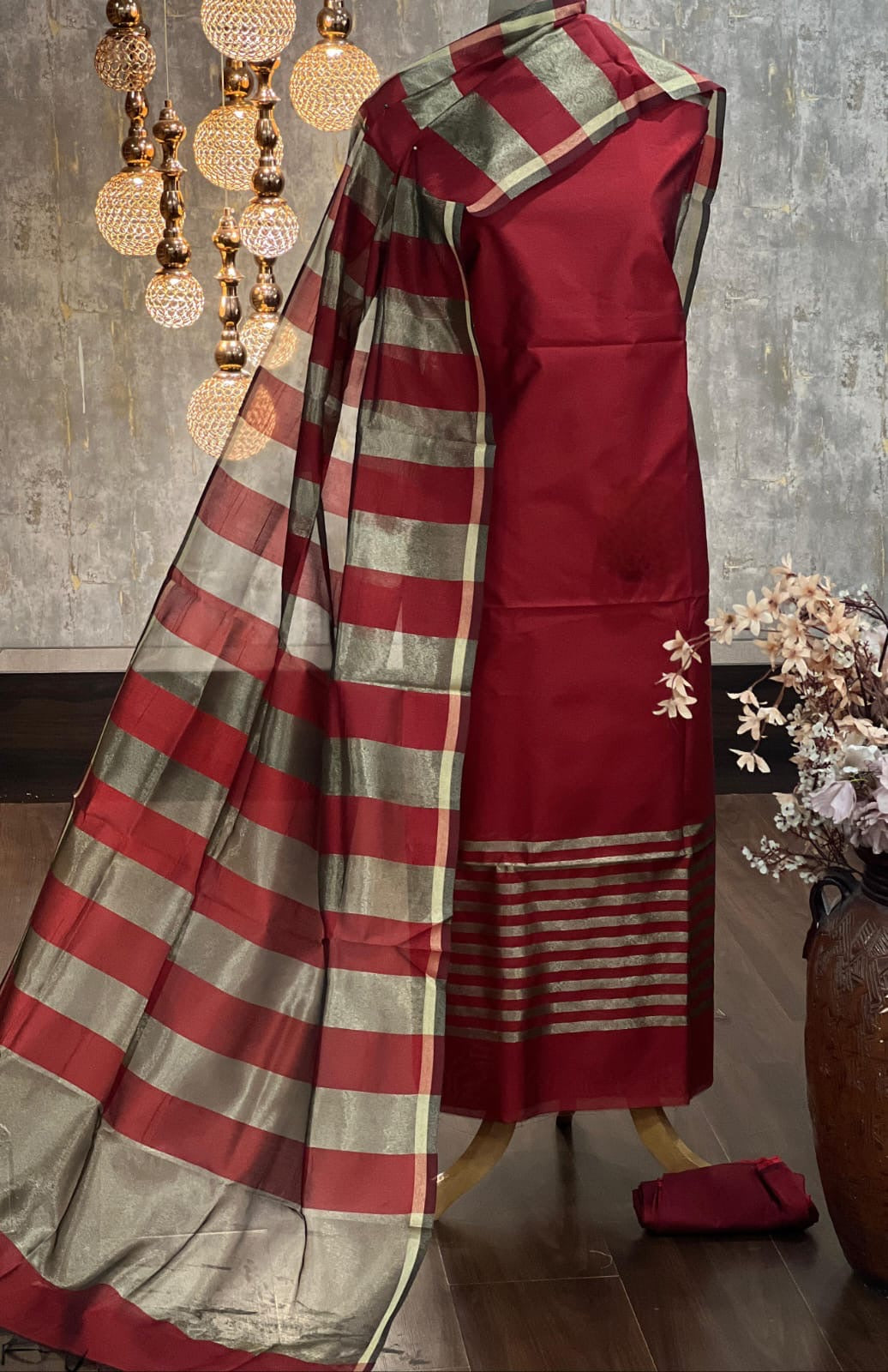 π« Step into timeless beauty with our luxurious Banaras Silk Daman Suit Set β crafted to make you stand out in every occasion. Unveil pure tradition with a modern touch through this exquisite 3-piece suit set, featuring premium Banaras craftsmanship and elegant silk textures.