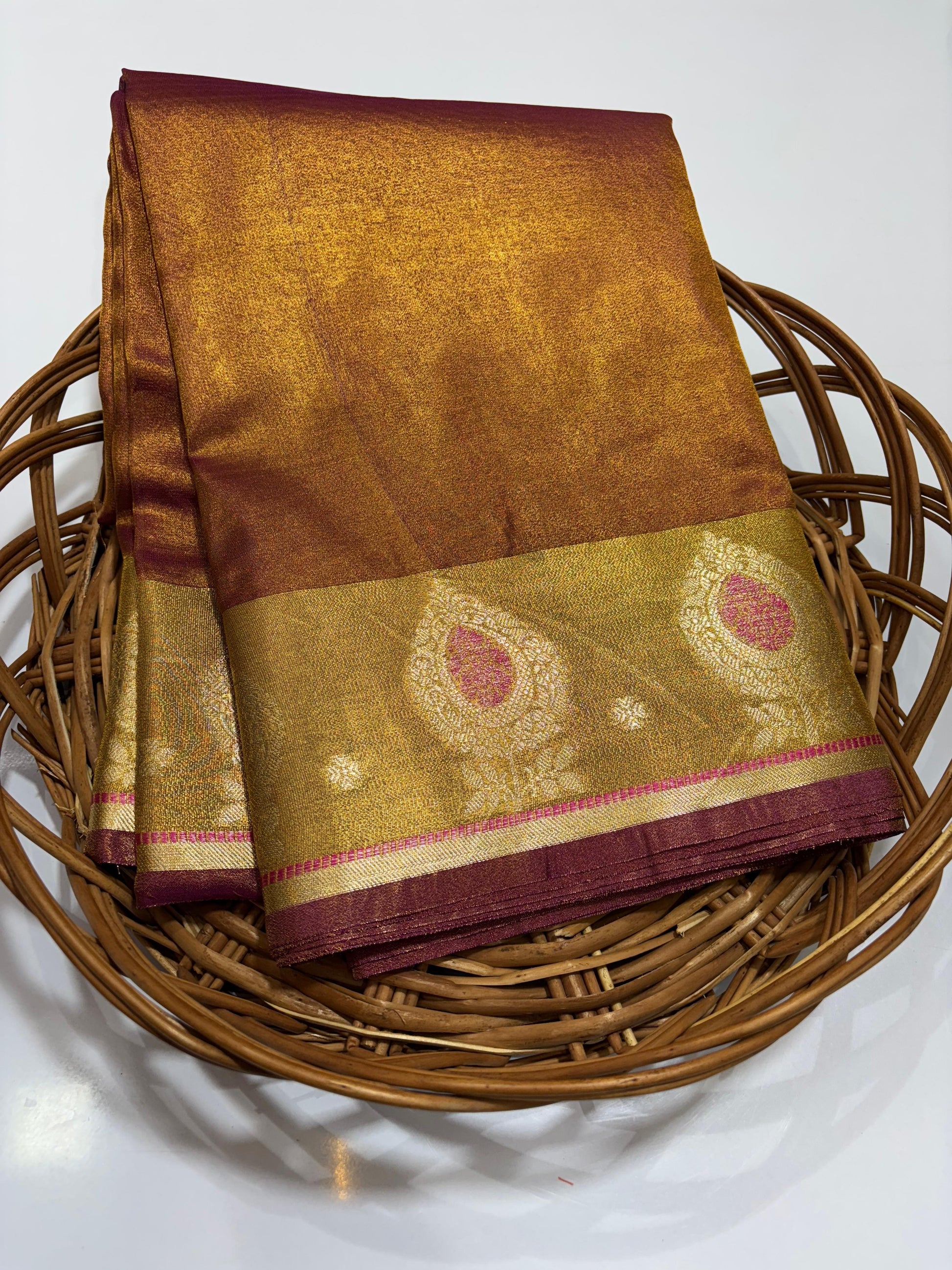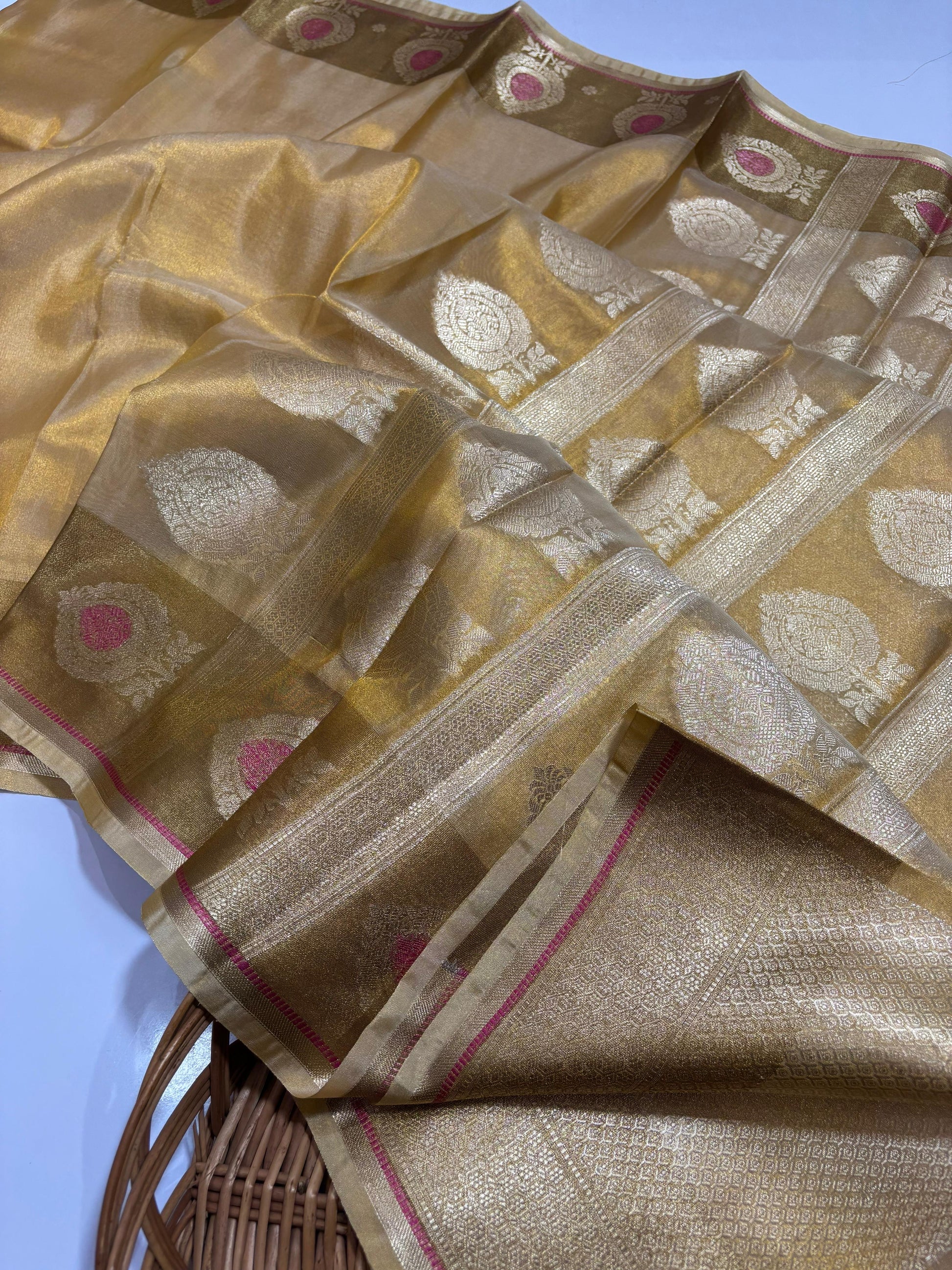 Handwoven Banarasi Tissue Saree with Zari Pallu