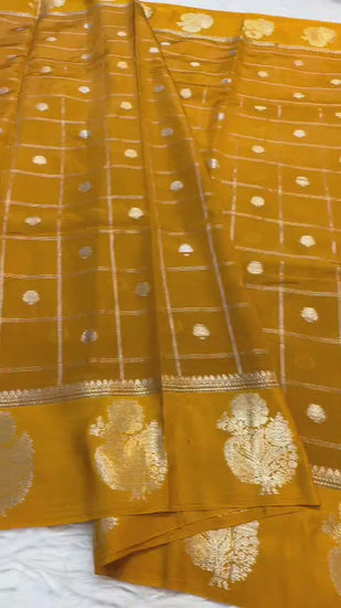 Mustard Banarasi Viscose Silk Saree with Golden Zari Weaves