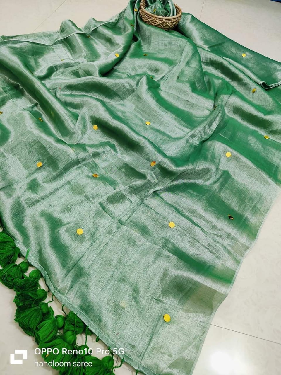 Pure Handloom Soft Tissue Silk Sarees with Sheer Pallu & Golden Accents