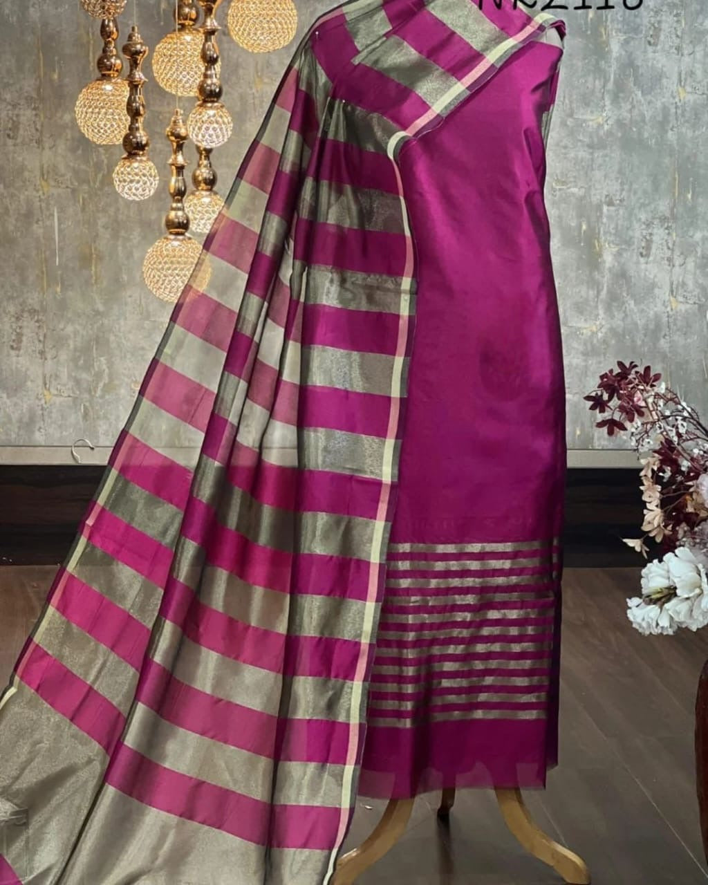 Elegance Is Here! Purple and gray striped Banaras Silk 3-piece suit set
