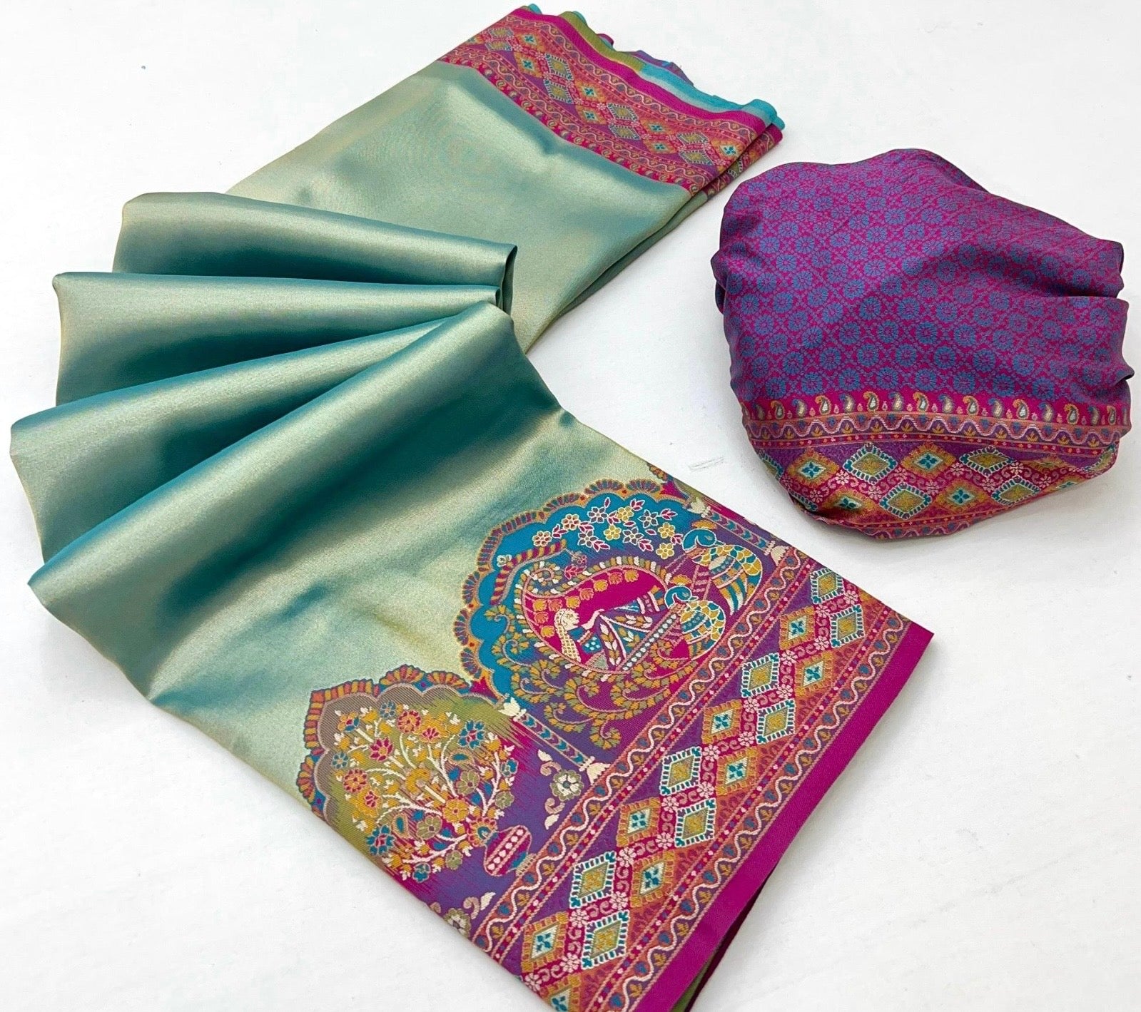 Unveiling a never seen before masterpiece β the Tissue Pashmina Collection, where sheer grace meets timeless warmth. Crafted from pure tissue fabric, interwoven with luxurious zari work, and adorned with a richly textured pashmina-woven border and pallu. This one-of-a-kind blend radiates regal elegance and contemporary charm.