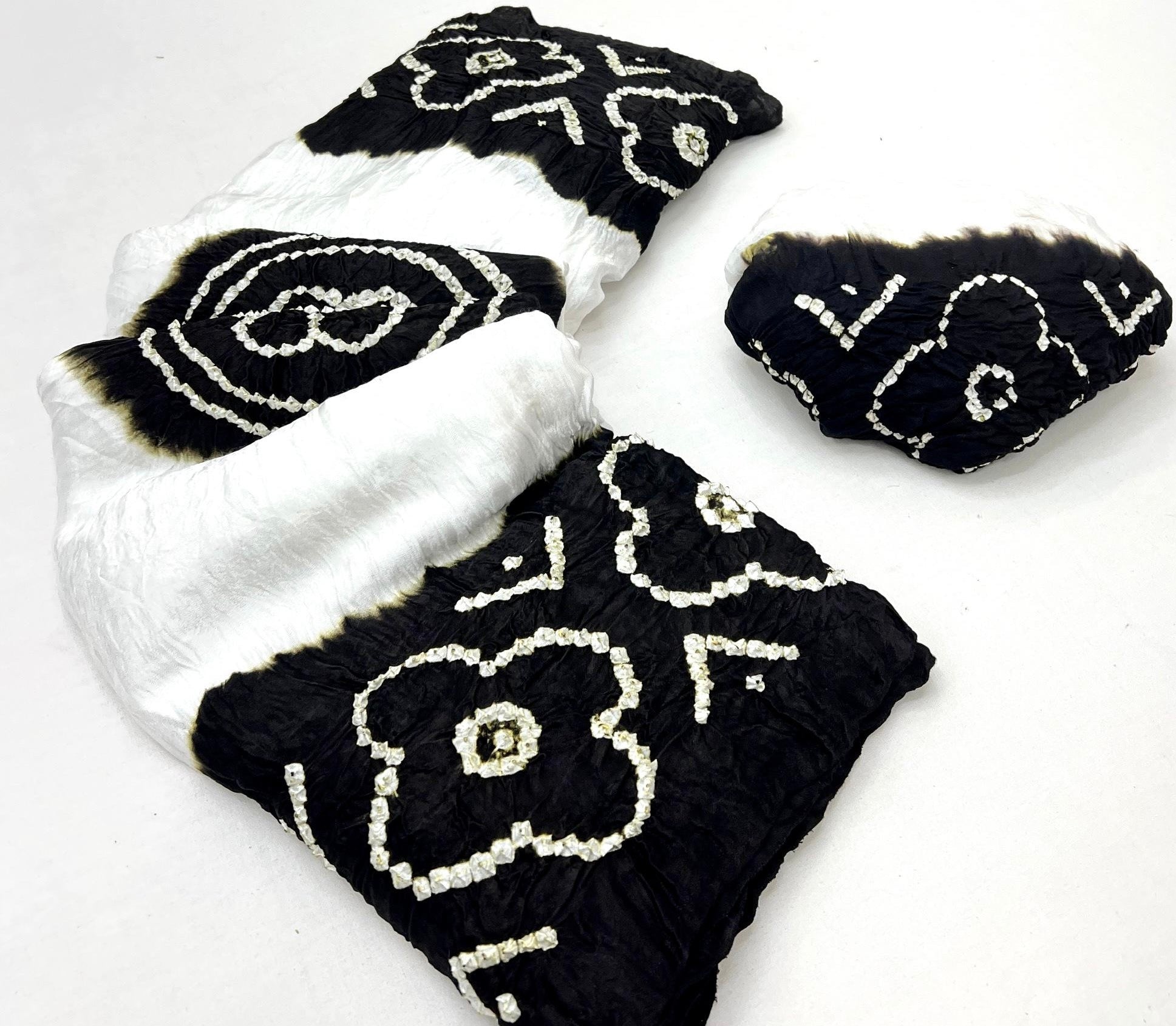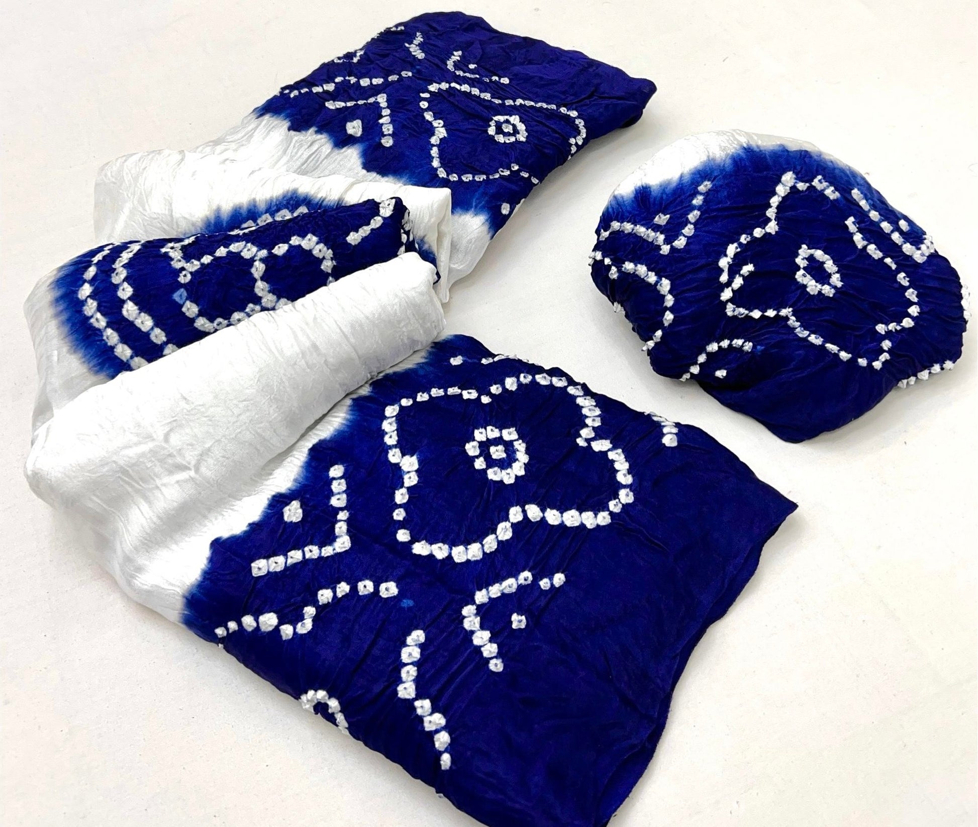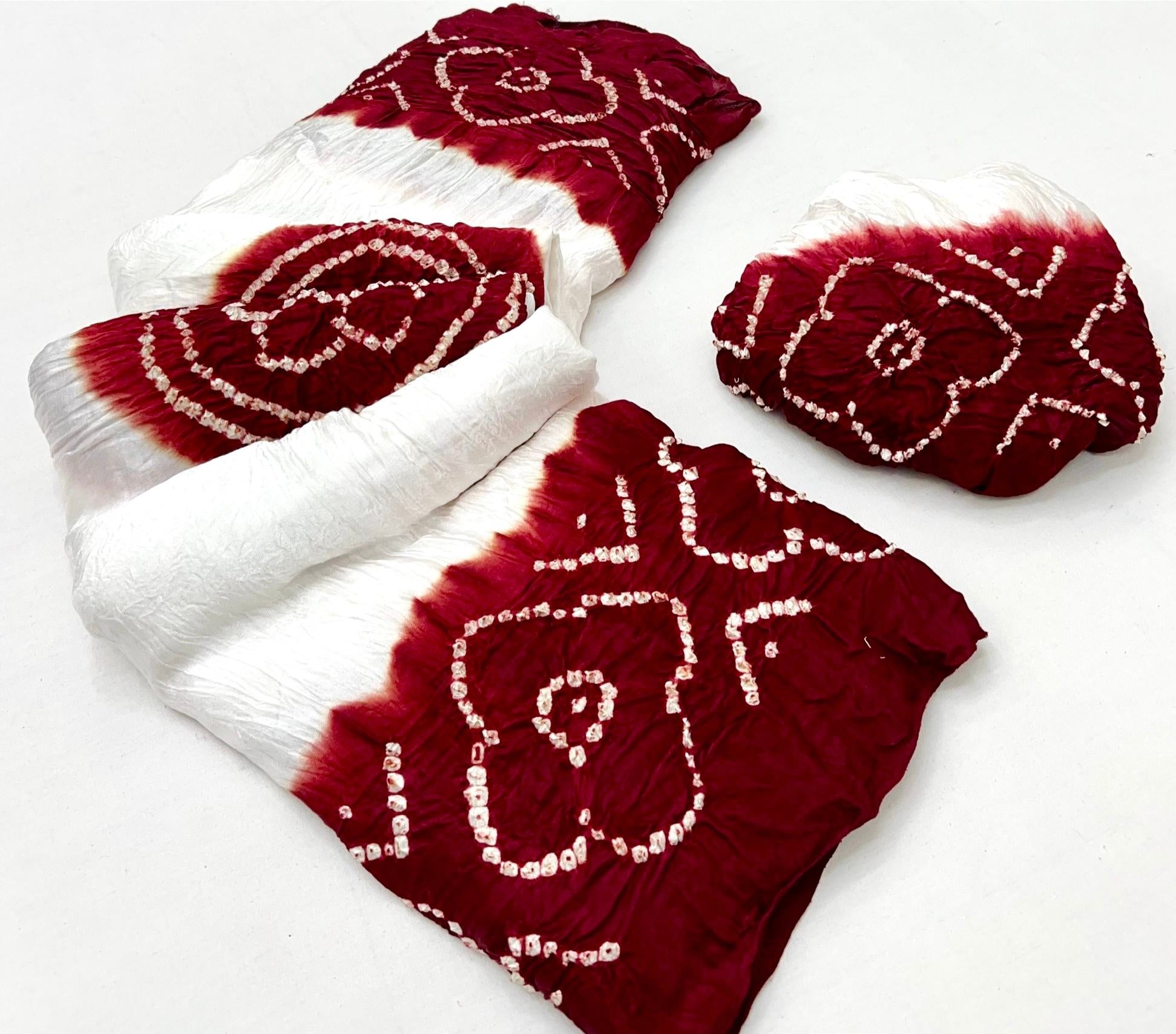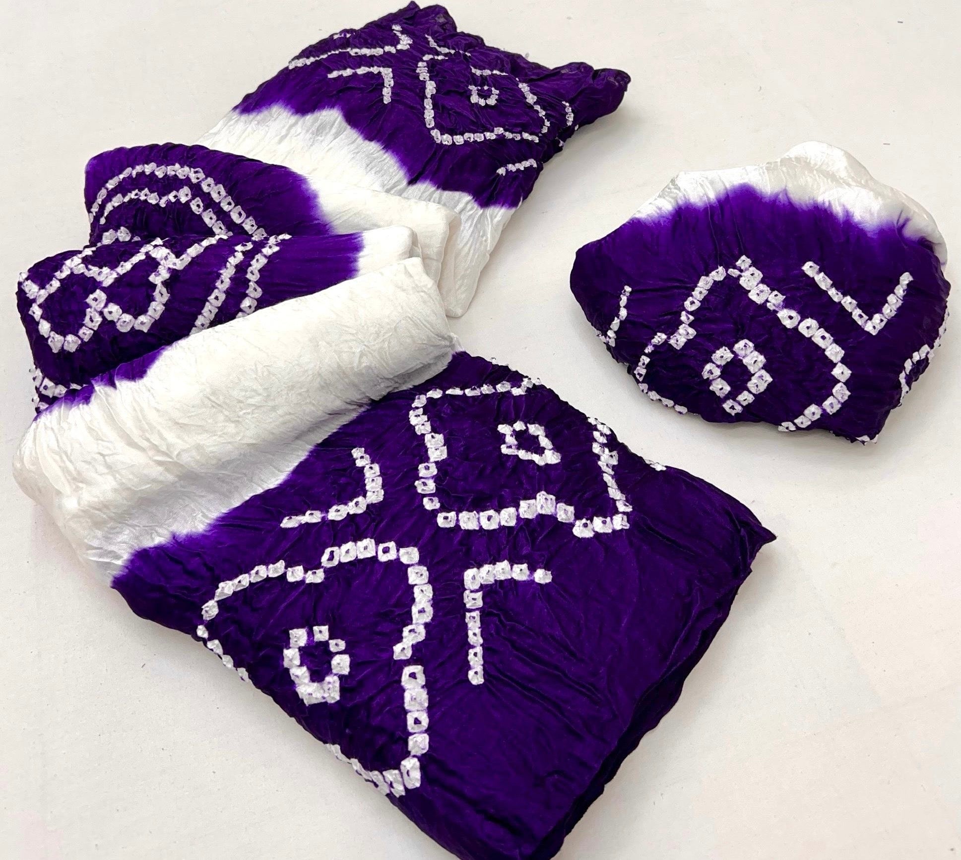 Luxurious Gajji silk saree adorned with vibrant contrast Bandhani patterns, ideal for festive and special occasions.