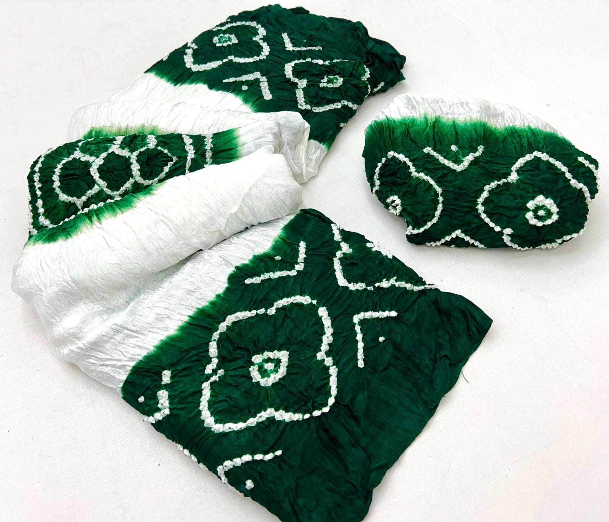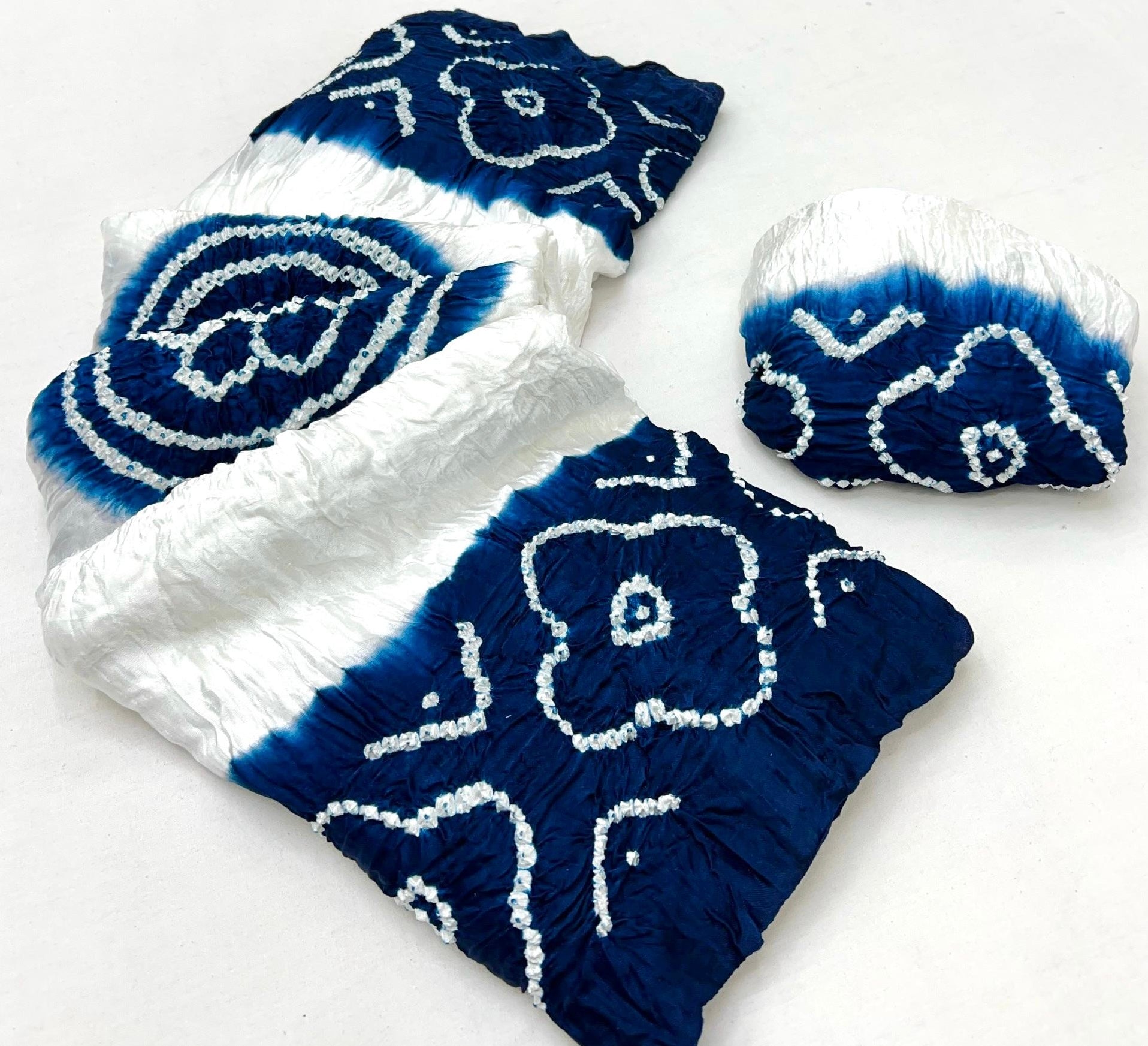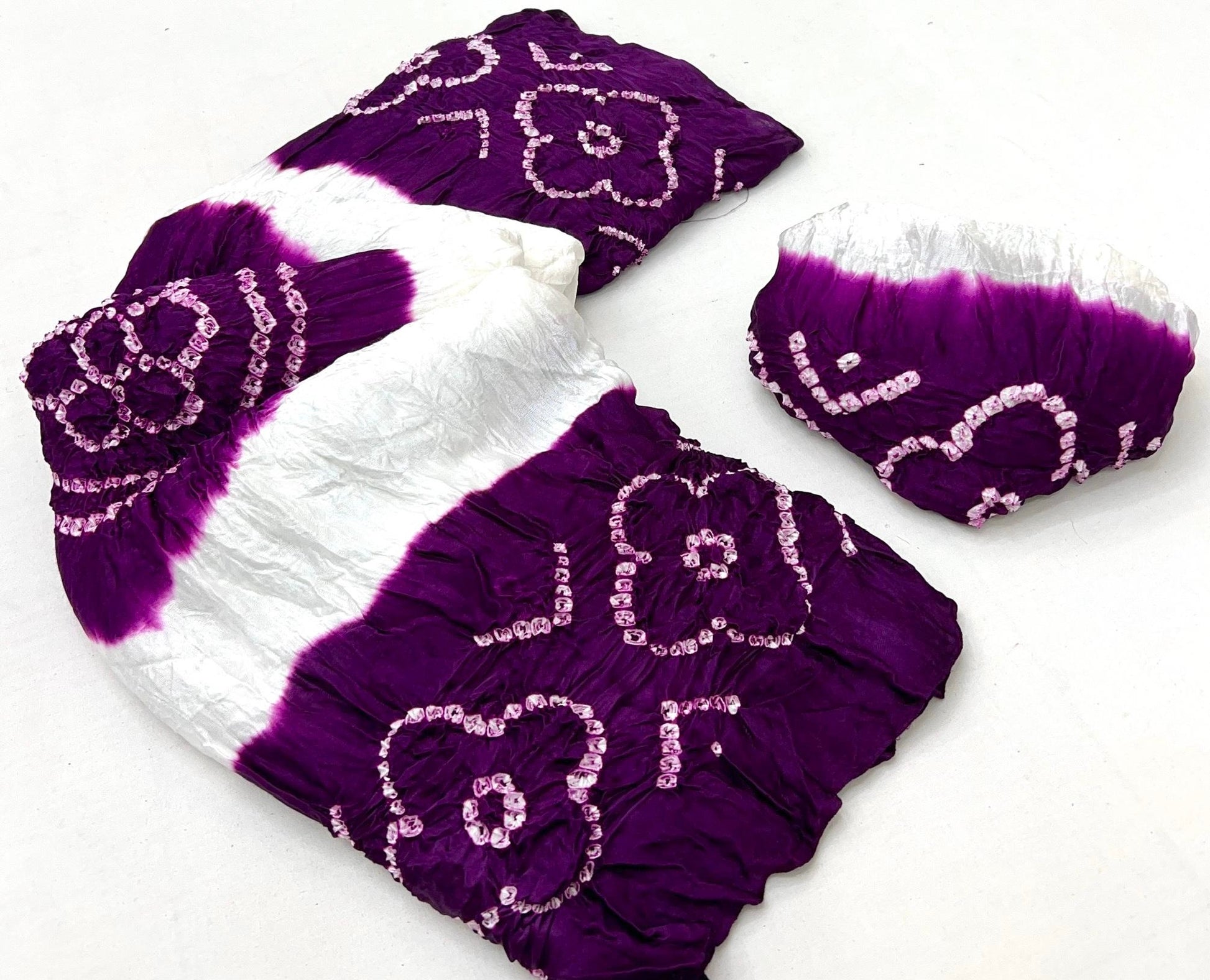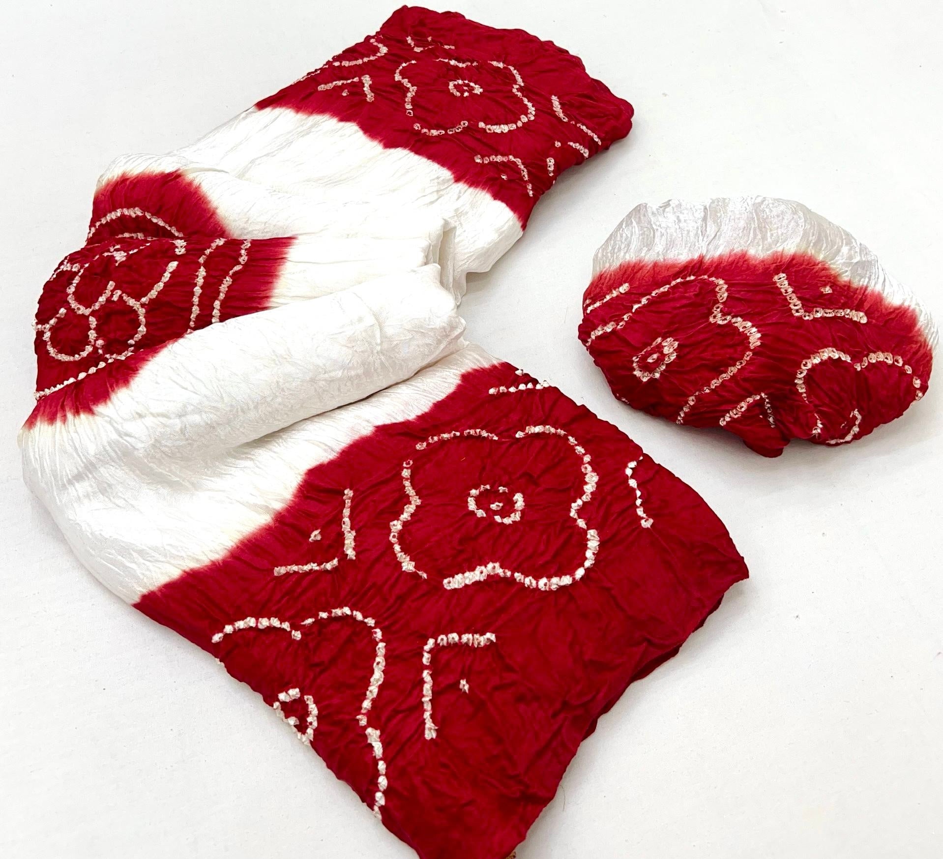 Luxurious Gajji silk saree adorned with vibrant contrast Bandhani patterns, ideal for festive and special occasions.